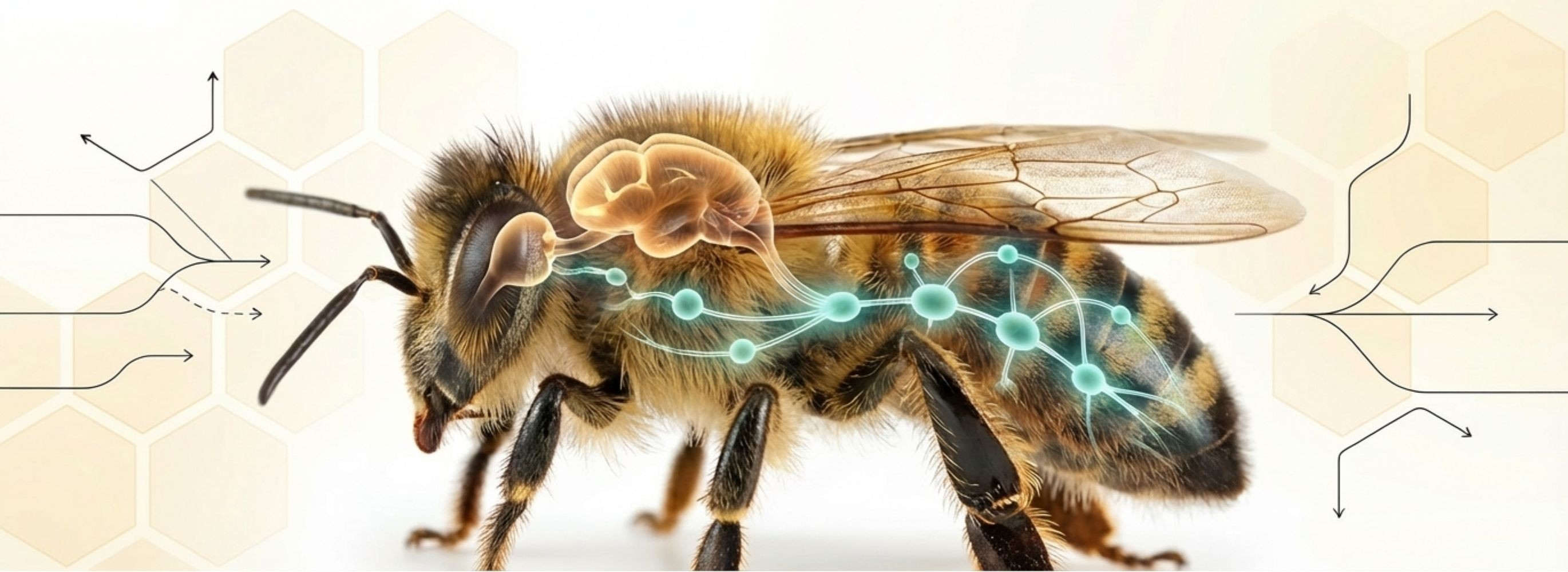 記憶を保存するわたしたち人間の脳。人の脳を形成するニューロン(神経細胞)の数は、約1000億個あると言われています。昆虫は、平均すると約10万個あり、ミツバチは、約80万〜100万個あると言われています。昆虫の中でも発達した脳をミツバチは持っていることになりますね。では、この優れた脳を持つミツバチ。その脳はどのように働いているのか、掘り下げてみましょう。