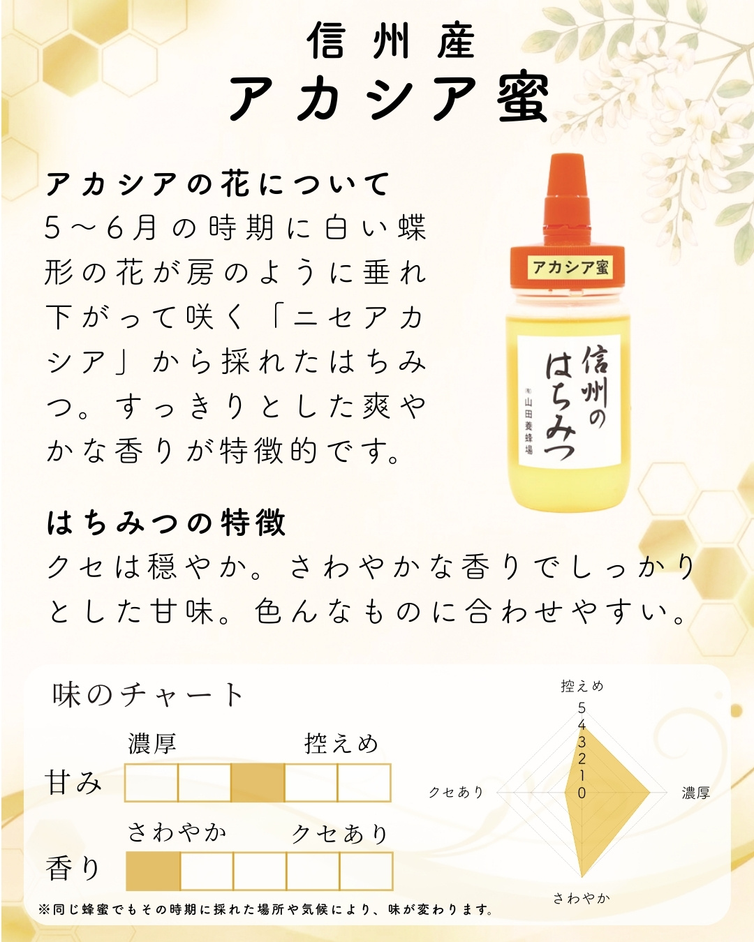 信州のはちみつ アカシア蜜 500g (ポリ容器)