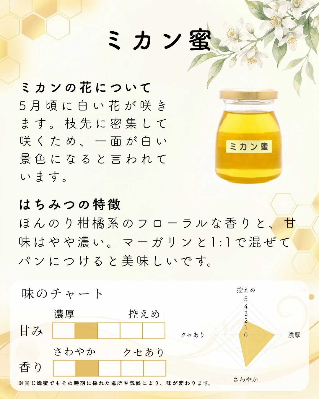 | 使用上の注意 | 白く結晶することがございますが、はちみつの特性によるものですので品質には問題ございません。湯煎して頂けますと元に戻ります。1歳未満の乳児には与えないでください。 |