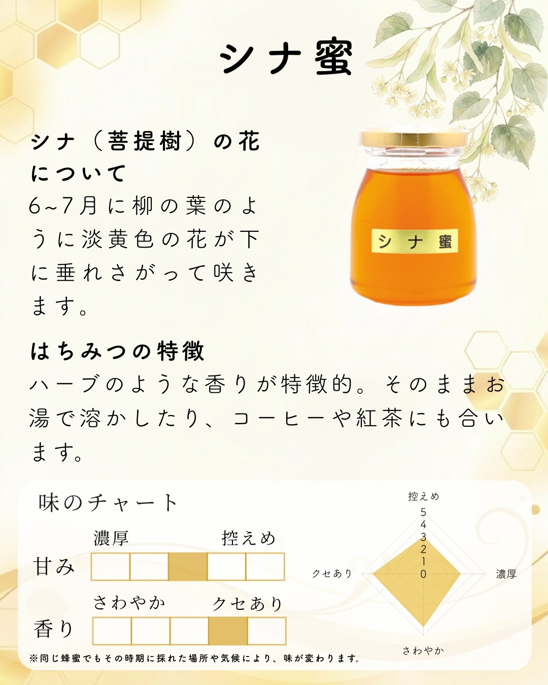 国産はちみつそれぞれの味や香りをまとめています。ご参考いただければ幸いです。国産はちみつ比較表.page 当店のオリジナルのはちみつ利用法です。はちみつ利用法(PDFファイル)ぜひ、ご覧ください。 |